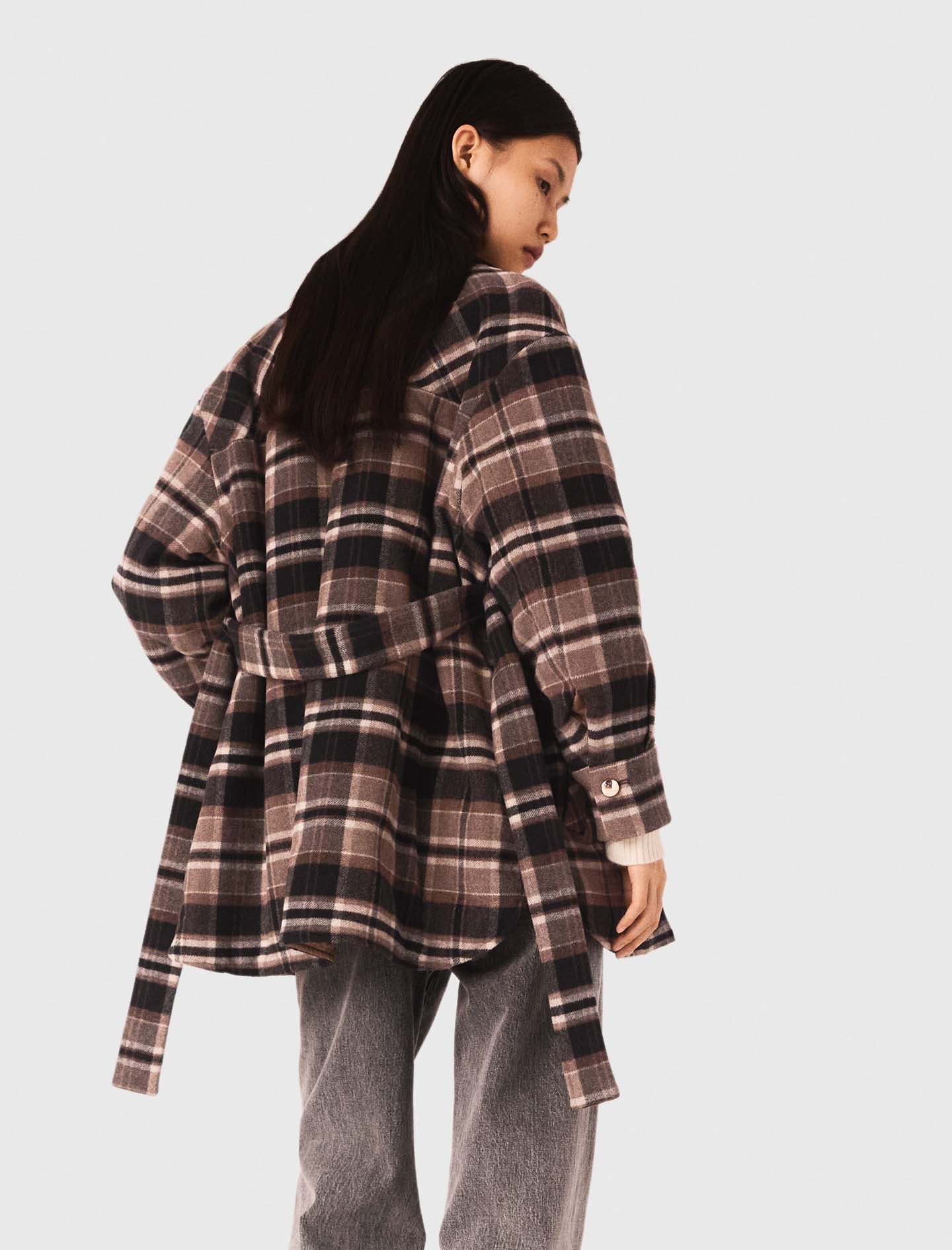 La silueta se construye con volumen, en materiales suaves y cómodos. Este abrigo acolchado de cuadros combina un cuello camisero clásico y manga larga para un look estructurado y contemporáneo. El cinturón desmontable permite realzar la cintura y modular la silueta al gusto, mientras que los bolsillos con solapa aportan un toque funcional y gráfico. Recupera la inspiración preppy, reinterpretada en una versión cool, para llevarlo abierto o con cinturón para realzar la cintura, y combinado con un vaquero desgastado.