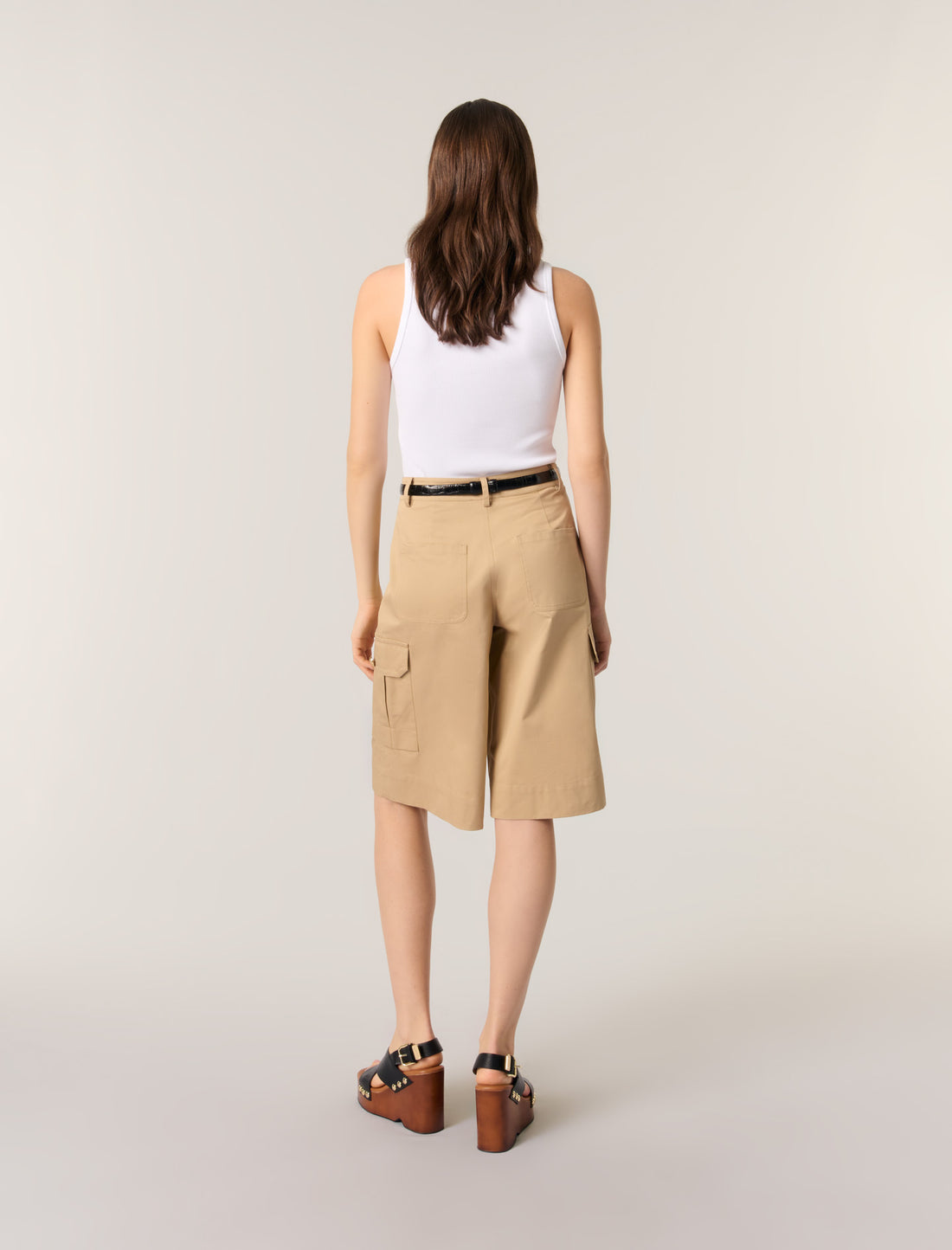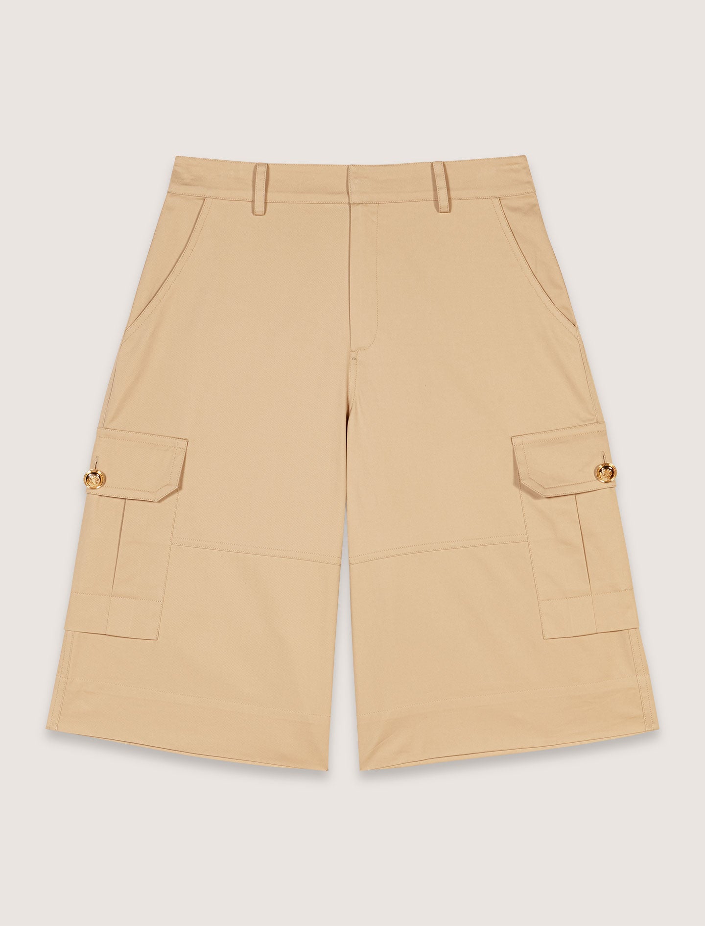 Con su talle alto y su corte ancho, estas bermudas de algodón son imprescindibles esta temporada. Elegante y funcional, tiene dos bolsillos con solapa y botones dorados y dos bolsillos en la parte delantera y trasera.