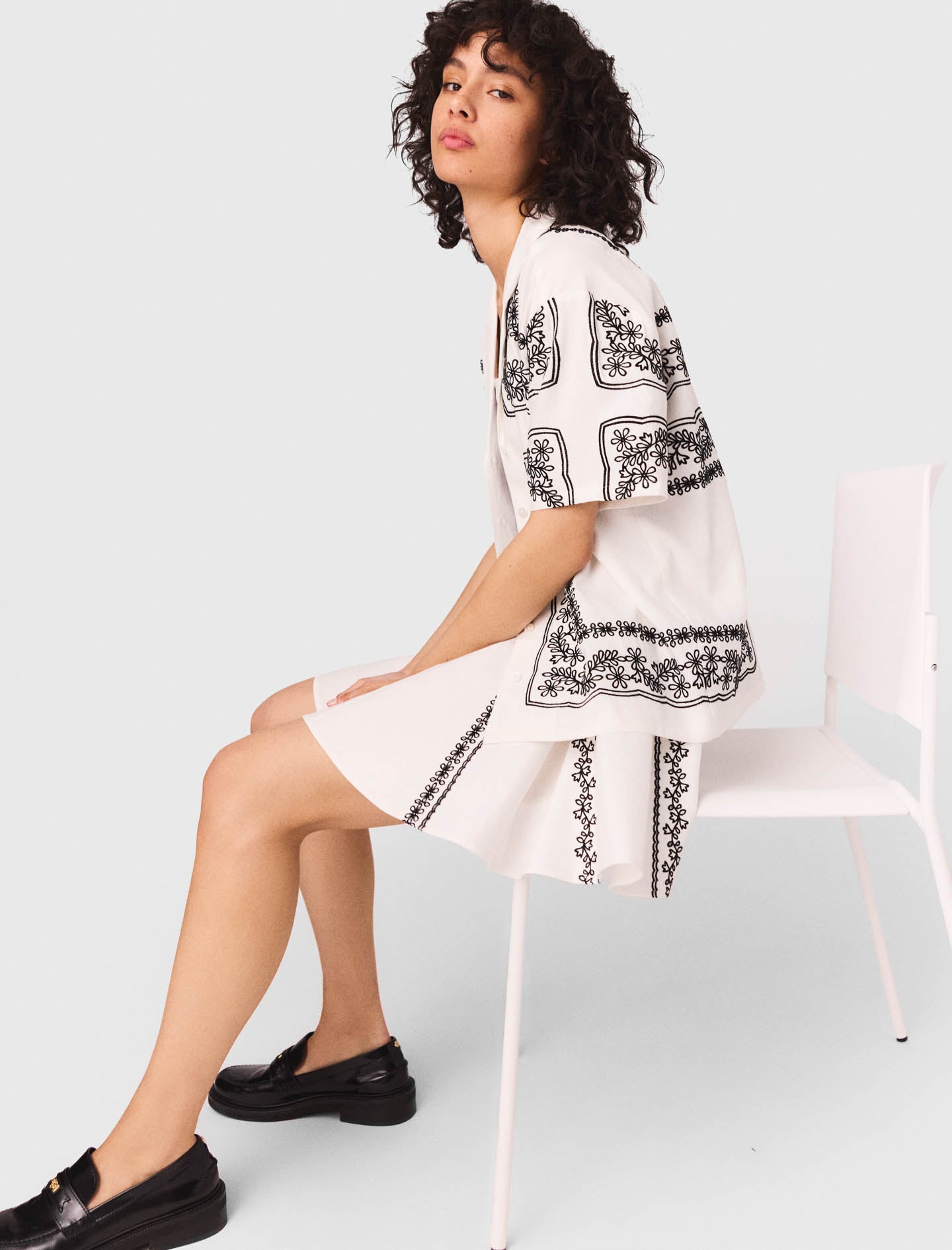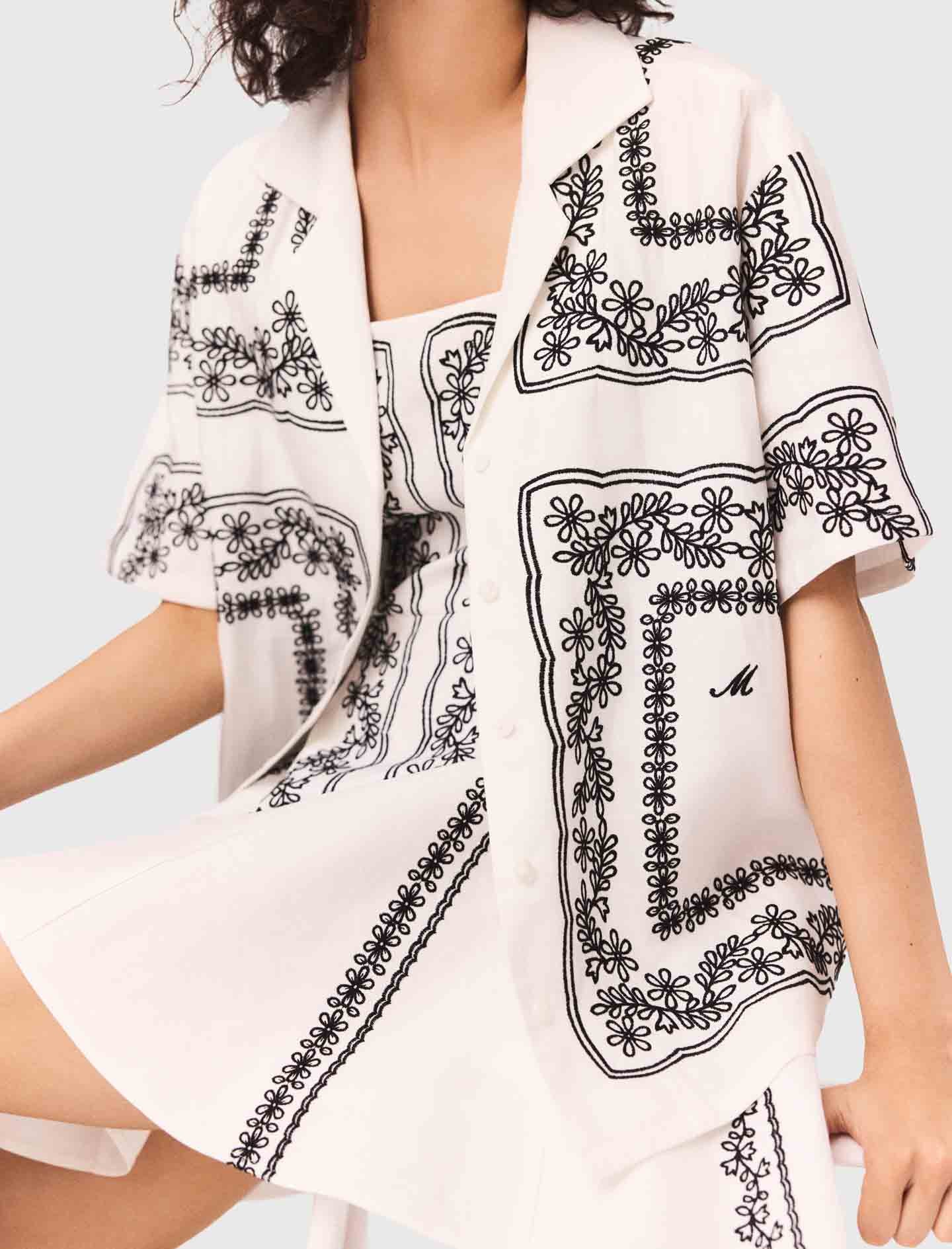 • Camisa de lino con bordados florales en contraste