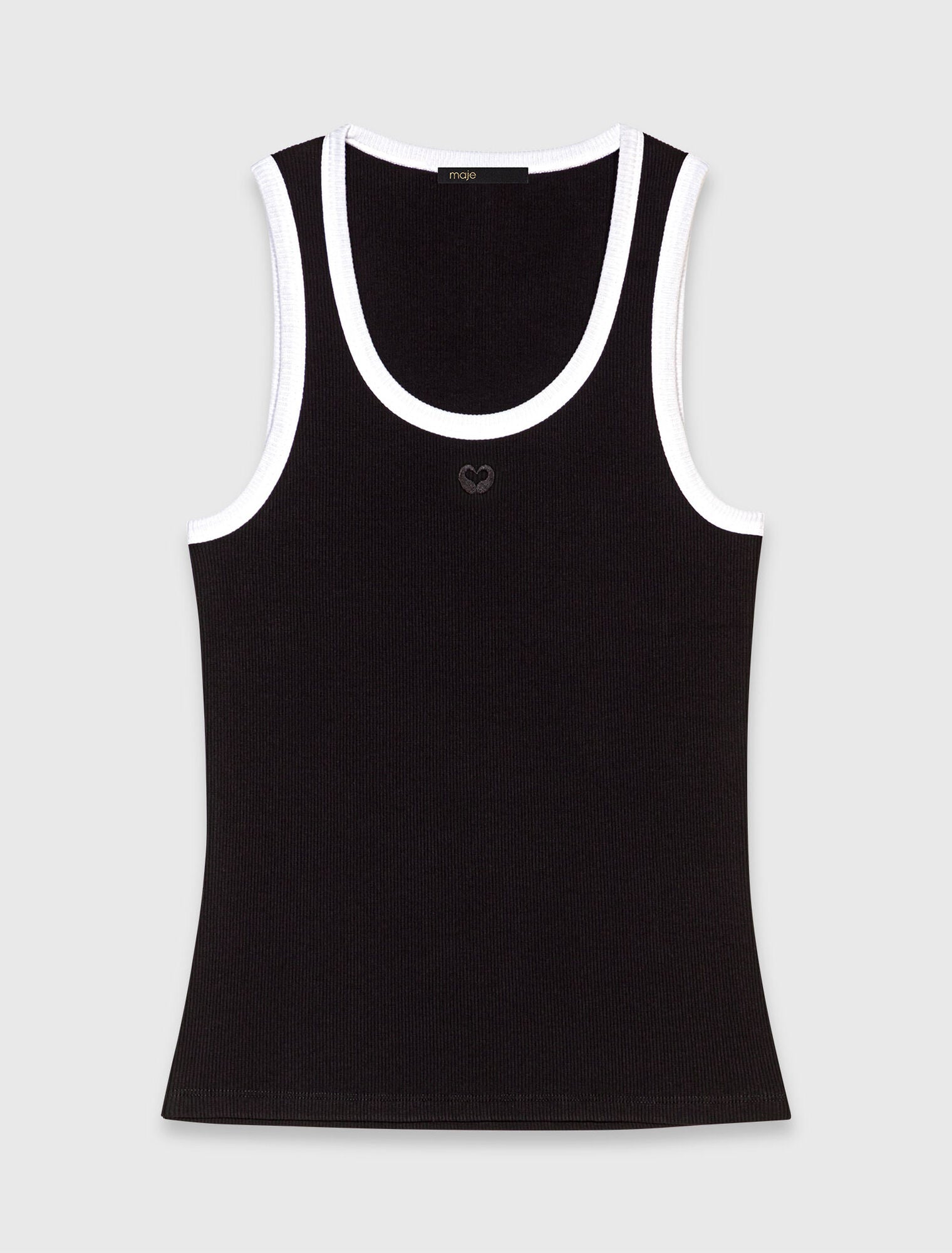 Esta camiseta de tirantes de punto jersey de canalé presenta Clover bordado y bordes en contraste. Informal pero con estilo, combina fácilmente con un pantalón y una americana. En cuanto a los accesorios, opte por un pañuelo, gafas de sol y bailarinas.