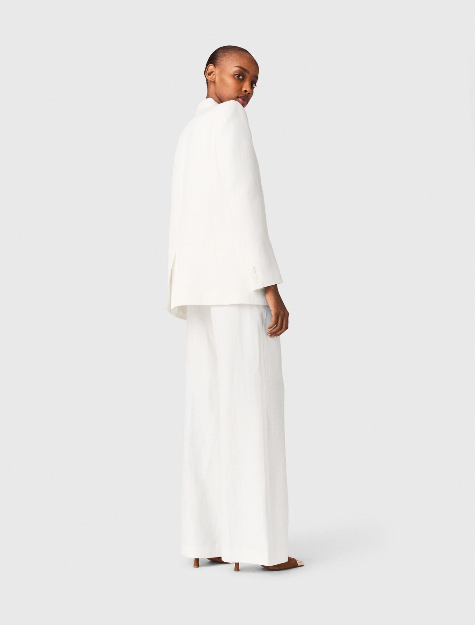 La mujer Maje, decididamente exploradora, explora la fuerza tranquila del armario masculino, con un toque de elegancia luminosa y gráfica.