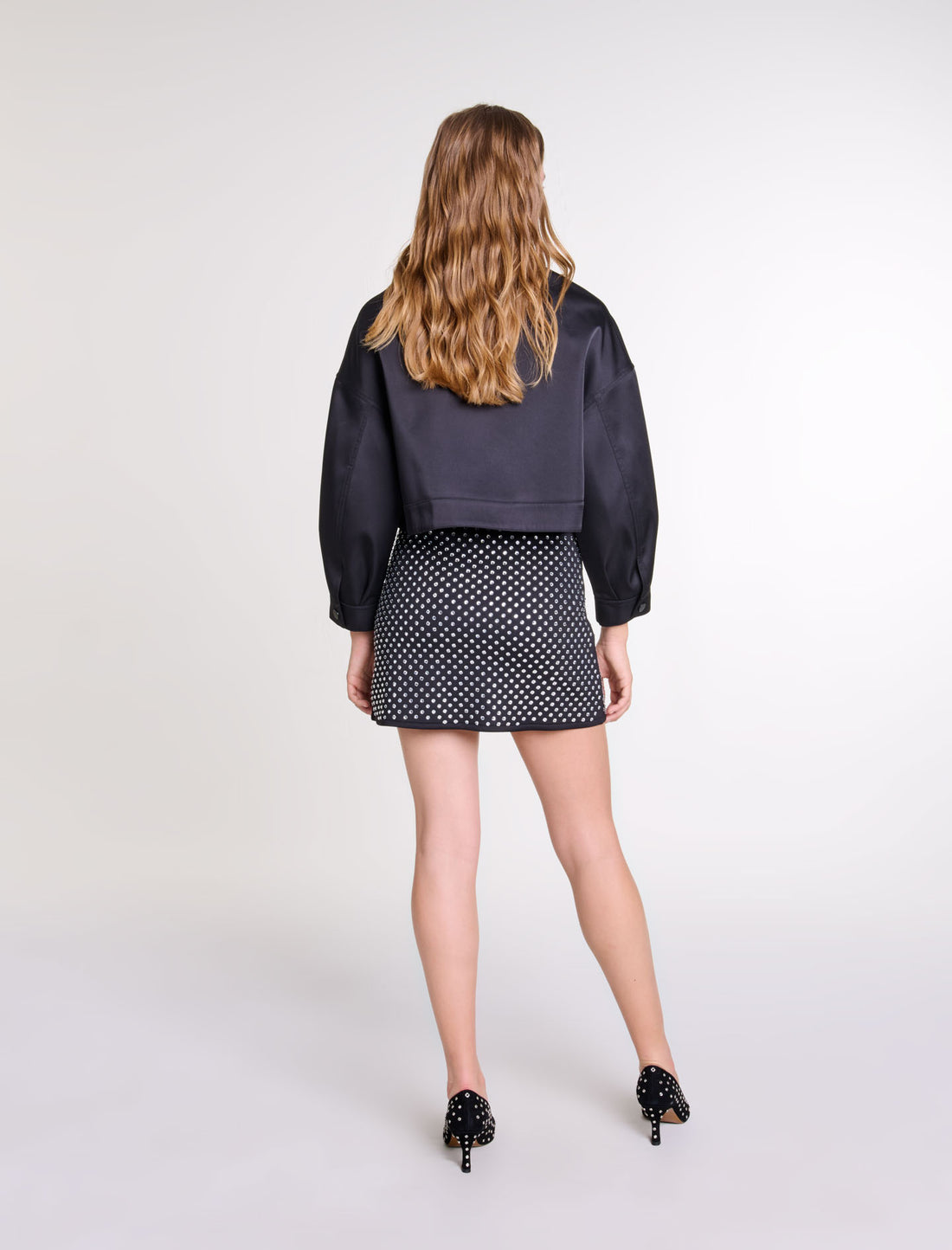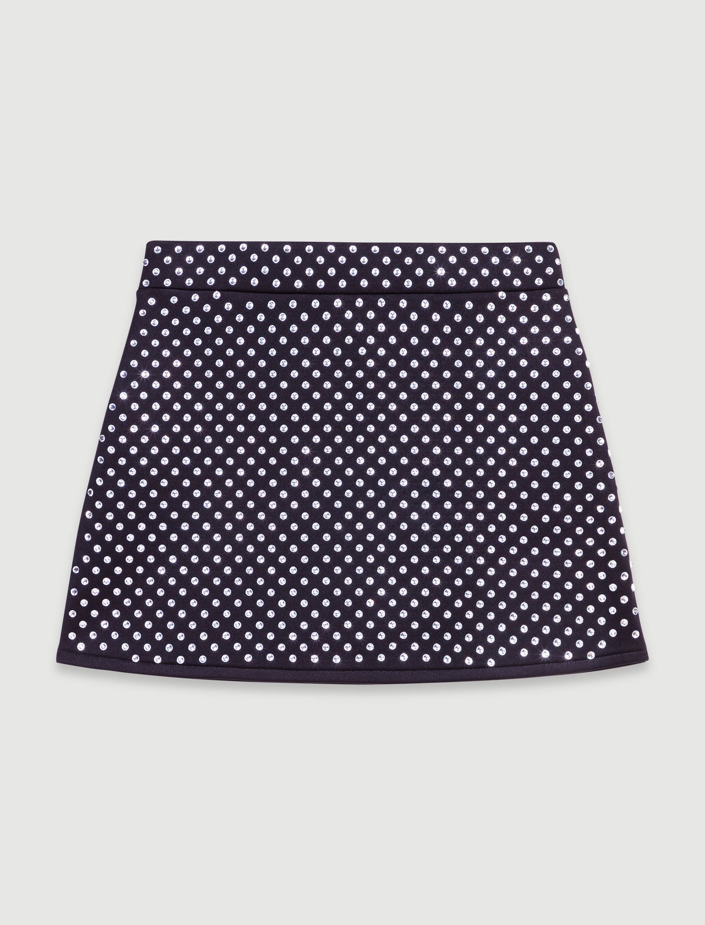 Adornada con strass en all-over, esta falda corta atrae todas las miradas con un llamativo juego de luces. Llévela de día o de noche, su corte estructurado realza la silueta con elegancia.