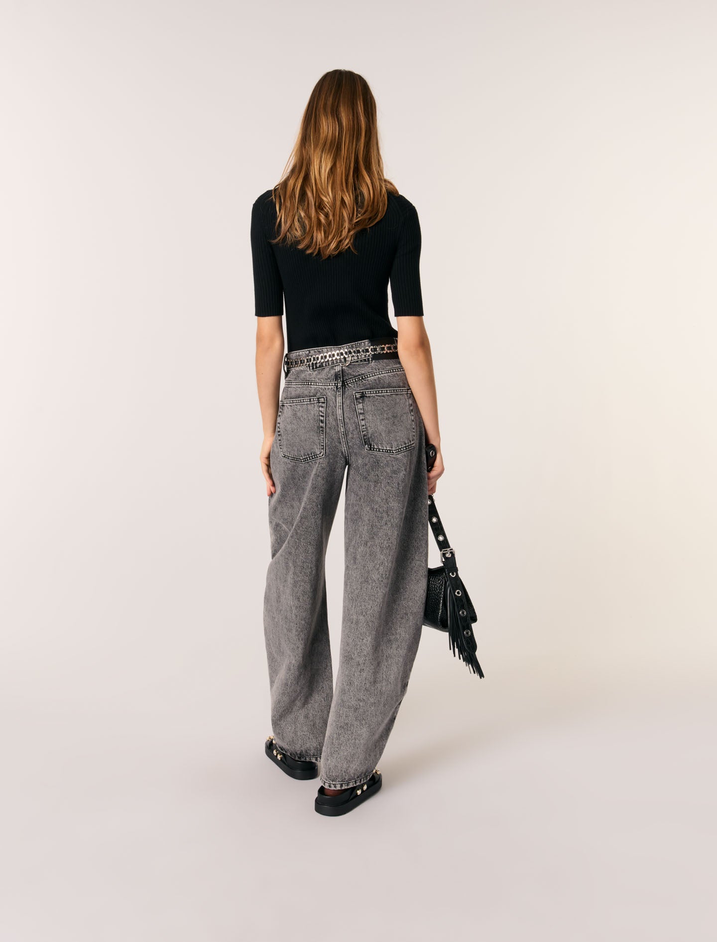 Para conseguir un look urbano informal, combínelo con vaqueros, un cinturón, sandalias de estrás y un bolso.