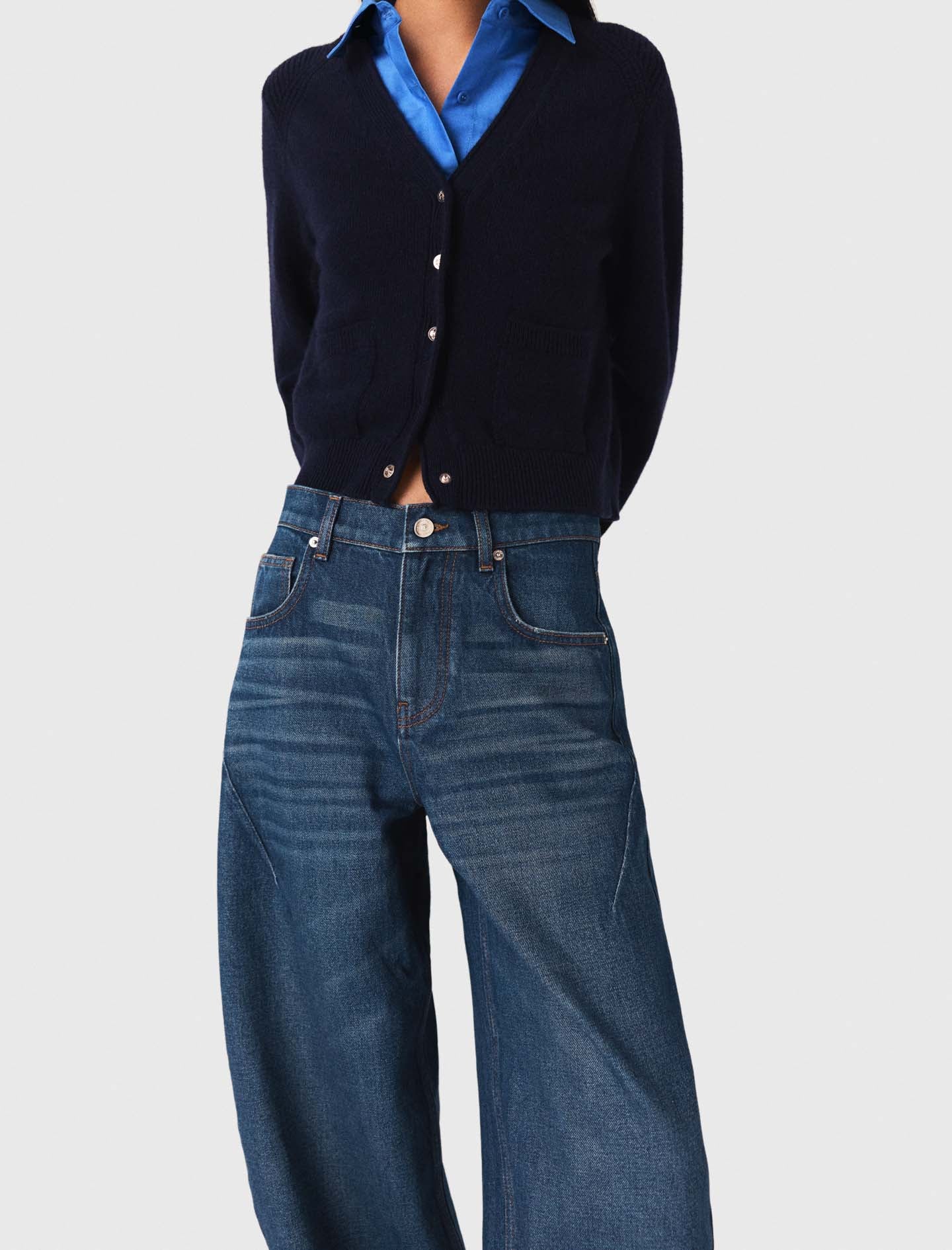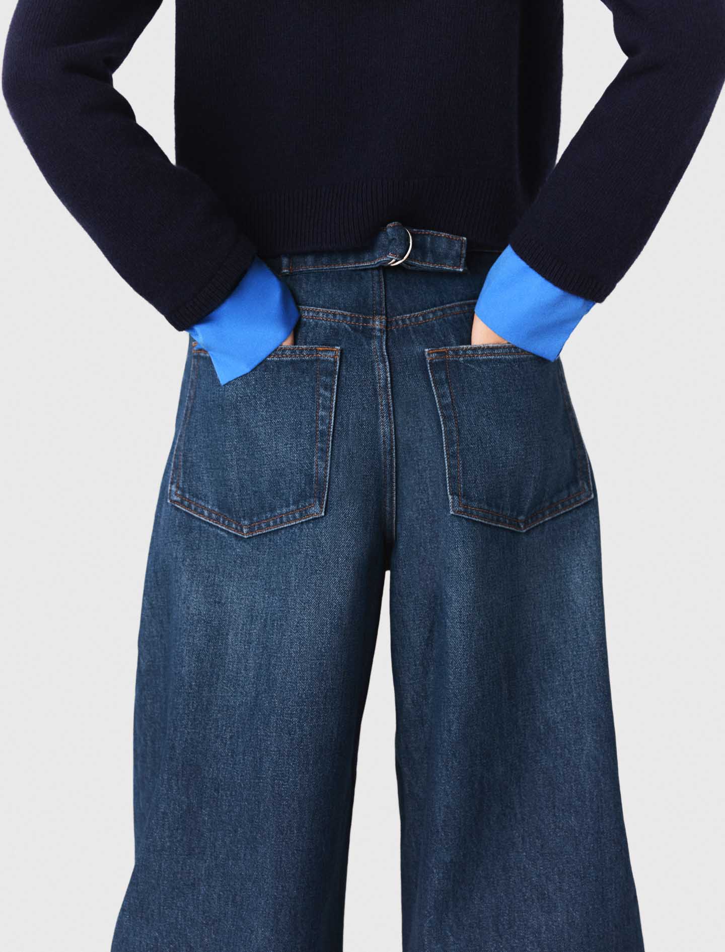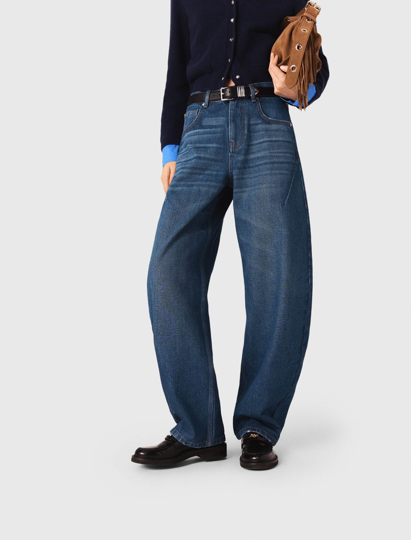 En el corazón de un armario pensado para afrontar la fría temporada con estilo, el denim se impone como un imprescindible en esta nueva colección de Maje. Reinterpretado con un corte globo que moderniza el denim de invierno, el vaquero se convierte en una segunda piel y en un básico para combinar con todas las siluetas. El detalle de la firma: una martingala en la espalda de estilo sartorial, para una silueta ajustada con un toque desenfadado. Añada un cárdigan de punto suave y accesorios de la firma para completar el look: un bolso de ante con flecos, un cinturón de cuero y mocasines brillantes.