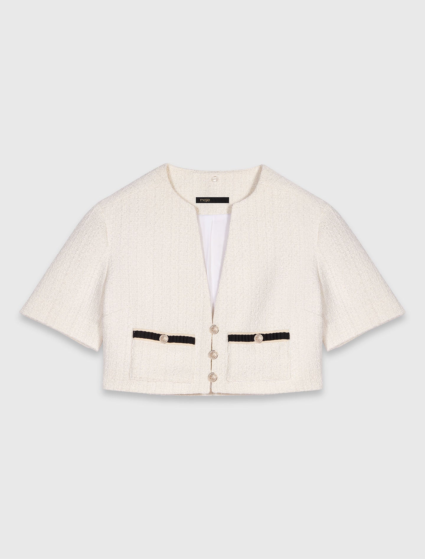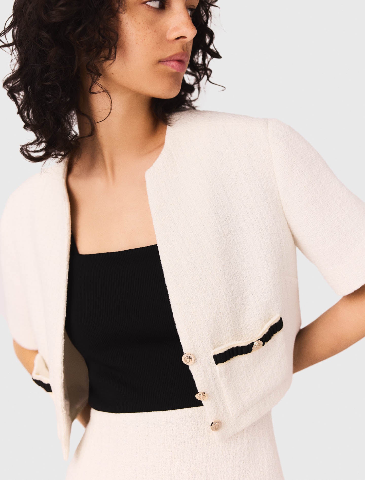 • Chaqueta corta con cuello en contraste y mangas cortas