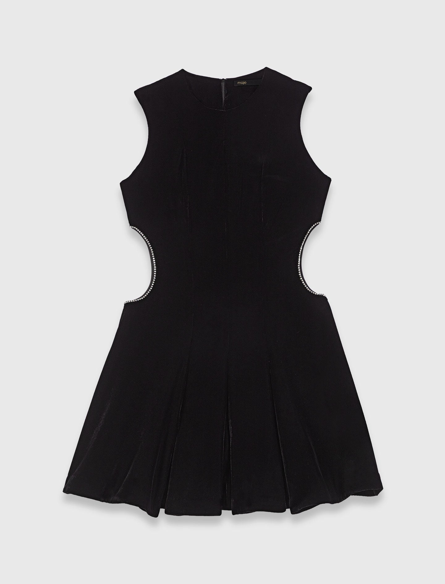 Este vestido reinventa el espíritu festivo con una silueta babydoll adornada con perlas y strass brillantes. La parte de arriba ajustada realza la cintura antes de dar paso a una falda acampanada que capta la luz con cada movimiento. Un vestido ideal para quienes desean reafirmar un estilo elegante y femenino. Llévelo para un look total con un pantalón de terciopelo, zapatos de tacón con strass y un minibolso de flecos.